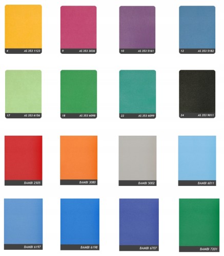 - w kolorystyce czerwono (BAMBI 2505)-żółto(AS 353 1123)-granatowej (BAMBI 6707)